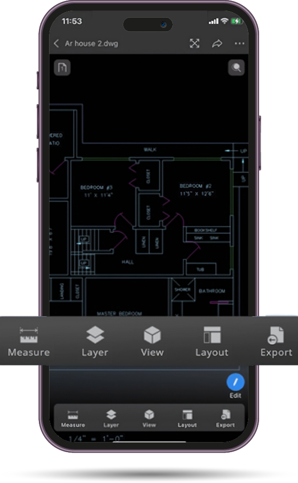 ZWCAD Mobile soporta la idición de archivos DWG y la visualización de archivos DWG, DXF y PDF.